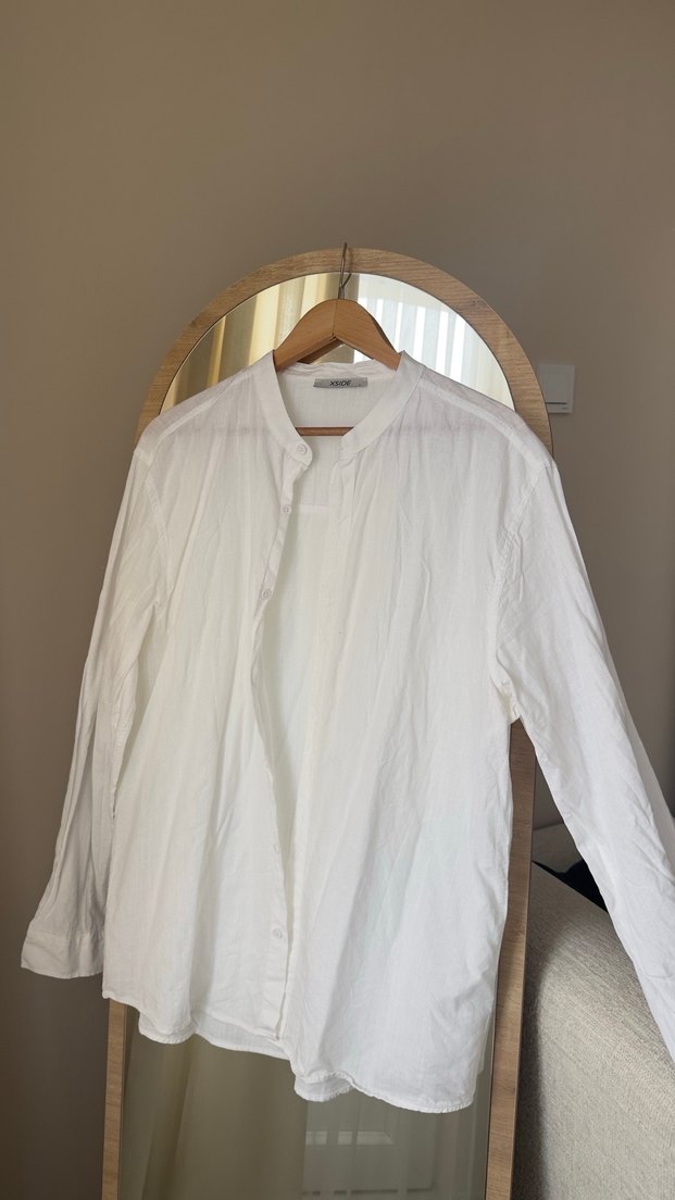 Beyaz keten uzun kollu gömlek, yakalı ve bol kesimdir. Minimalist, normcore stilinde, hafif ve desensiz tasarımıyla günlük kullanıma uygundur. ✨