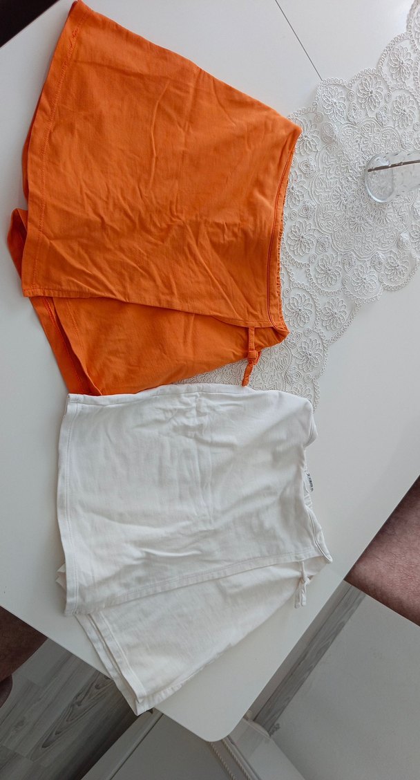 Gevşek kesim, keten kumaştan beyaz hamile mini şort, drapeli tasarıma sahip, günlük kullanıma uygun normcore stilinde. 11 yaş 13 yaş etekli pantolon iki adet
