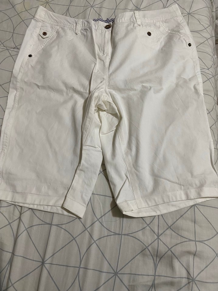 Beyaz keten kumaştan, kısa boy ve regular fit kadın bermuda şort. Düz ve normcore tarzıyla rahat, şık bir görünüm sunar.
