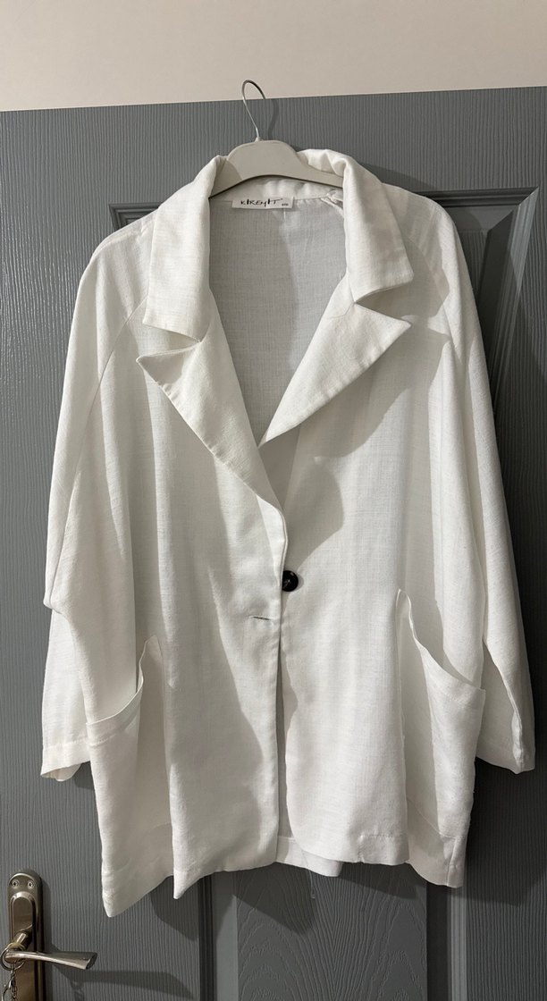 Beyaz keten çeket kiremit marka standart beden geniş kalıp