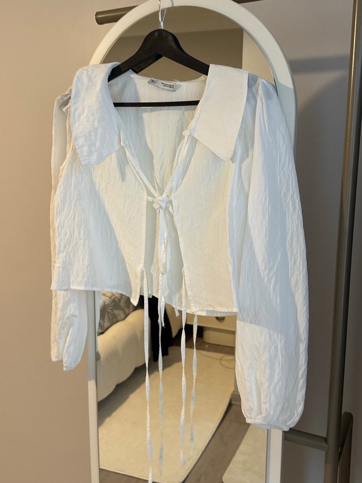 Beyaz Keten Kadın Bluz, Uzun Kollu, Salaş yeni etiketli - Görsel 1