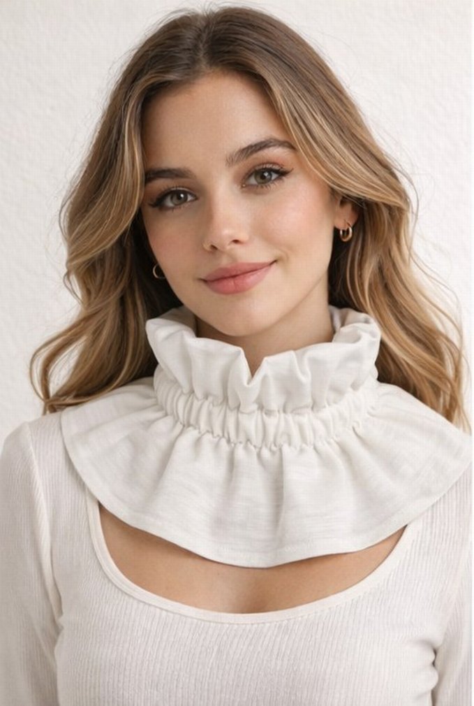 Beyaz Keten Kadın Fırfırlı tak çıkar boyunluk