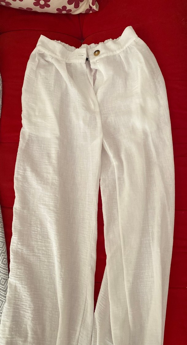 Beyaz Keten Kadın Pantolon