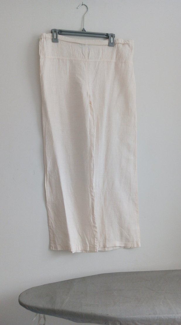 Beyaz keten pantolon, bol kesimiyle sade ve bohem tarzda rahat kullanım sunar. L beden yeni 100 TL son fiyatıdır pazarlık yoktur.