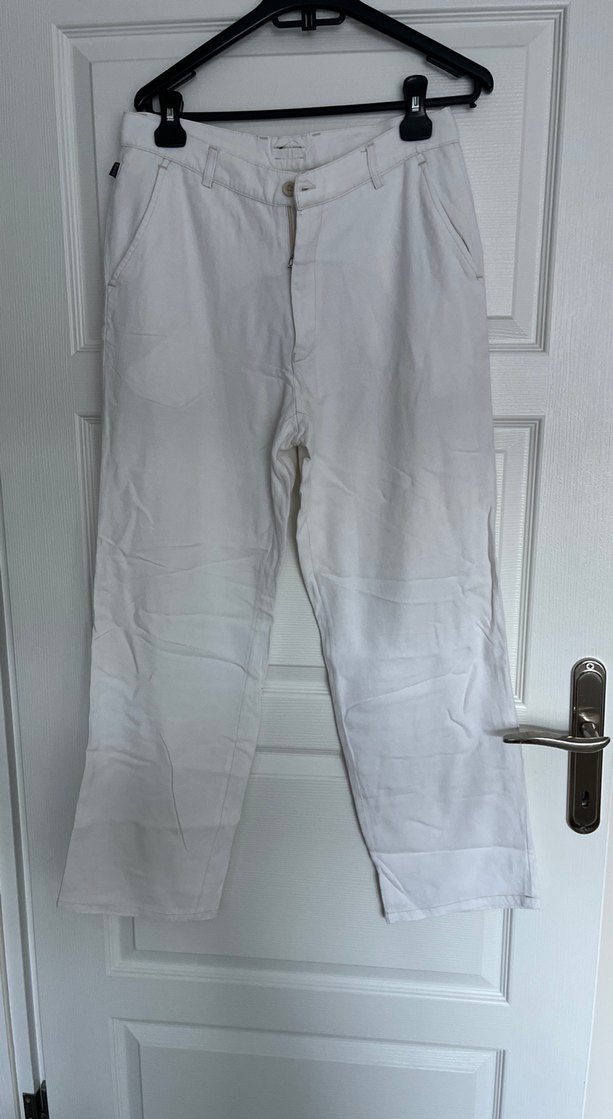 Beyaz Keten Kadın Pantolon