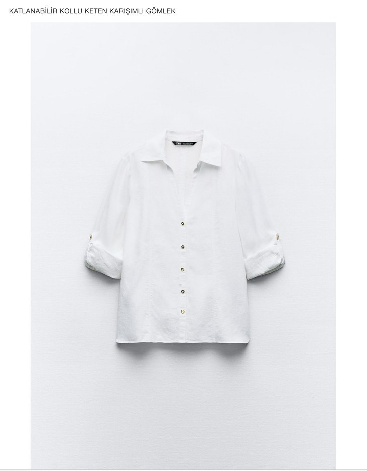 Beyaz keten karışımlı gömlek, kısa düğmeli kollara ve yaka detayına sahiptir. Normal uzunlukta, minimalist tarzda, günlük kullanıma uygundur. ✨ Sadece denenmiştir. Hiç giyilmemiştir. Hiçbir deformasyonu yoktur. Orijinal Zara markadır. XS bedendir. Ölçüleri görsellerde ektedir. Orijinal Zara mağazasından alınmıştır.