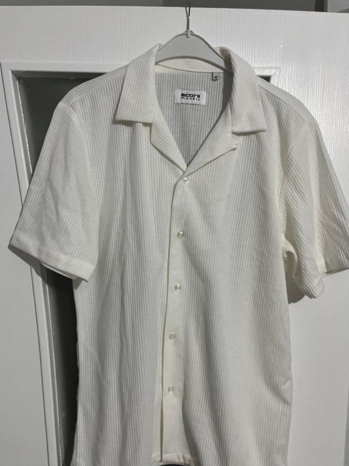 Beyaz keten kumaştan kısa kollu, düğmeli ve yakalı erkek gömleği. Regular fit, minimalist ve desensiz tasarımıyla günlük kullanıma uygundur. Trendy casual tarzı yansıtır. Herhangi bir sorunu yoktur temiz ürün