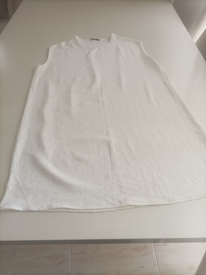Beyaz keten kumaştan, kolsuz, yuvarlak yakalı, bol kesim hamile tunik. Minimalist ve normcore tarzıyla günlük kullanıma uygundur. ☁️