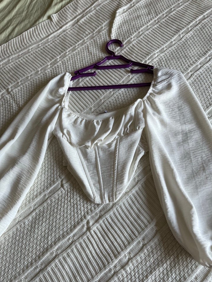 Beyaz Keten korseli bluz