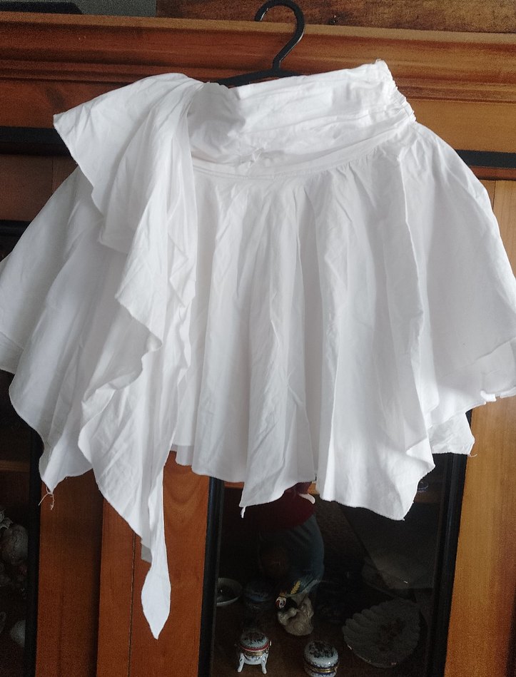 Beyaz keten hamile eteği, drapeli tasarımı ve bol kesimiyle rahatlık sağlar. Midi boyda, bohem tarzda . Parti için uygundur.