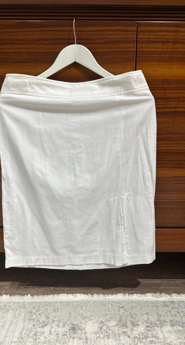 Beyaz Keten Midi Etek