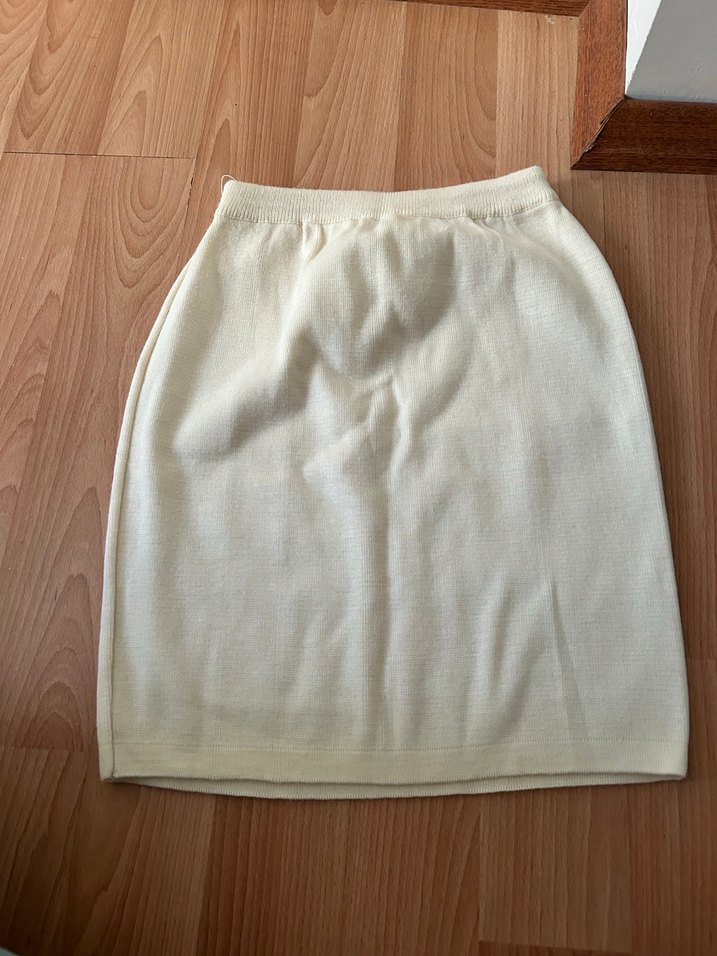 Beyaz keten kumaştan, midi boy, düz ve sade tasarımlı, rahat kesimli etek.Günlük kullanıma uygun minimal şıklık sunar.