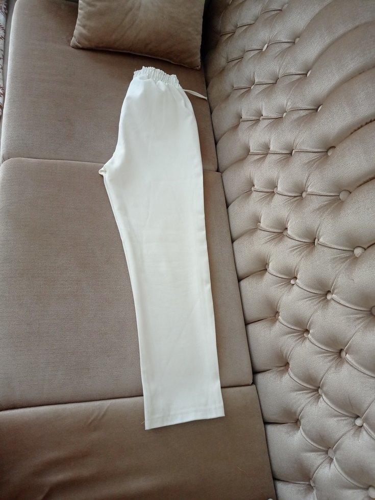 Beyaz keten midi pantolon, rahat kesim ve zahmetsiz şıklık sunar, günlük kullanım için uygundur.