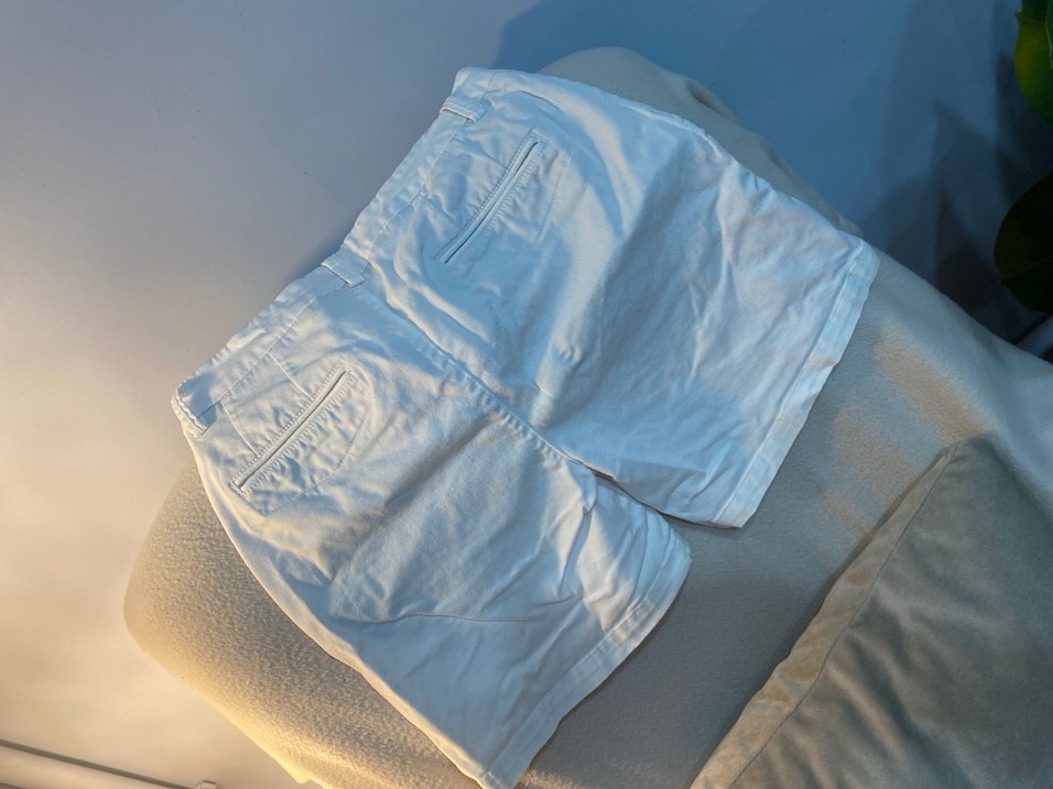 Beyaz keten kumaştan, midi boy, dar kesim şort. minimalist ve rahat şıklık sunar.