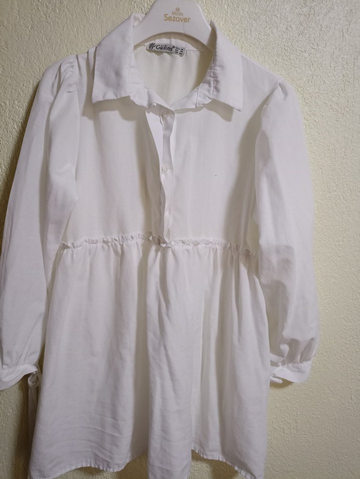 Beyaz Keten Mini Gömlek