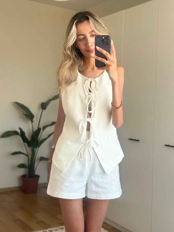 Beyaz Keten Mini Kadın alt üst takım