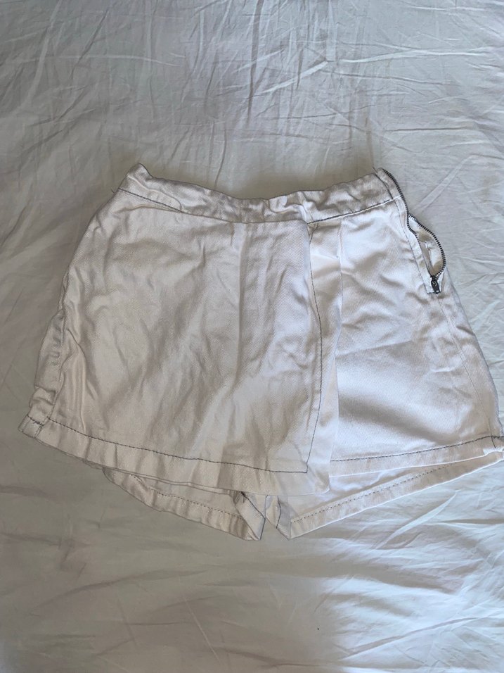 Beyaz Keten Mini Şort Etek