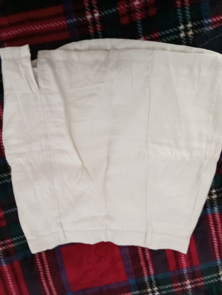 Beyaz keten kumaştan, Pilili, rahat ve bohem tarzda günlük kullanıma uygun etek.