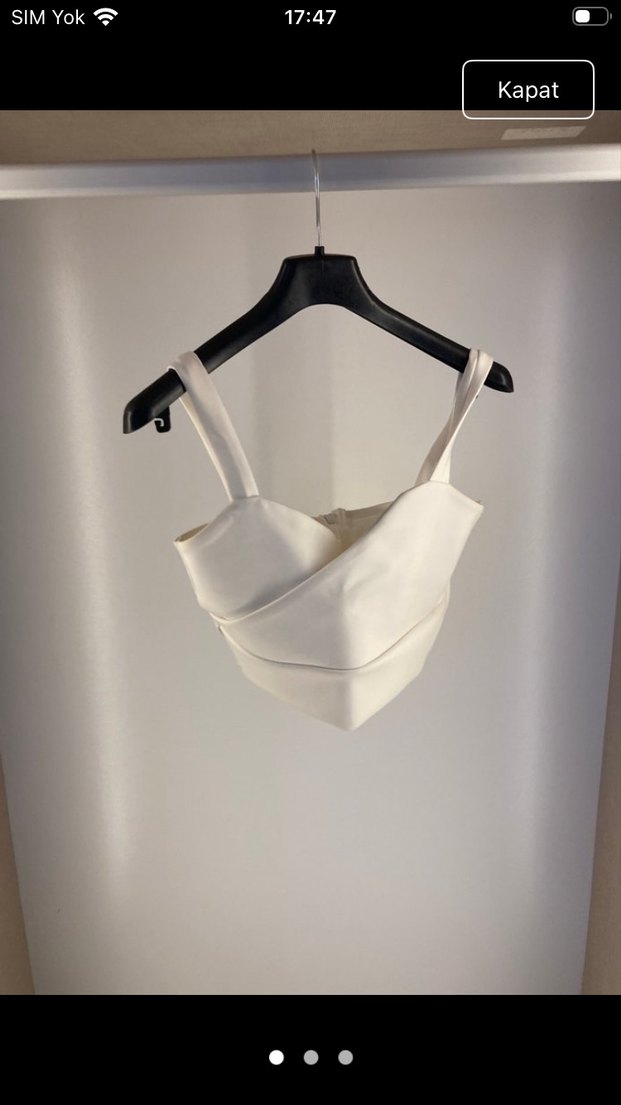 Beyaz keten, askılı ve pilili tasarıma sahip mini büstiyer. Straplez yakalı, kısa ve vücuda oturan kesimiyle minimalist sokak stiline uygun.