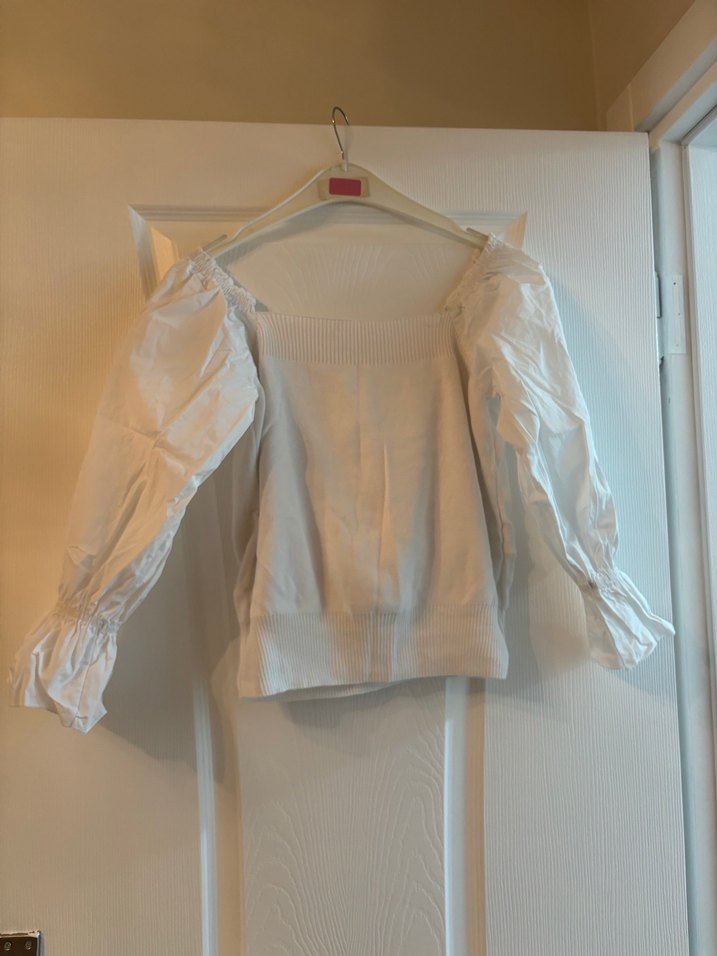 Beyaz Keten Piliseli Uzun Kollu Bluz