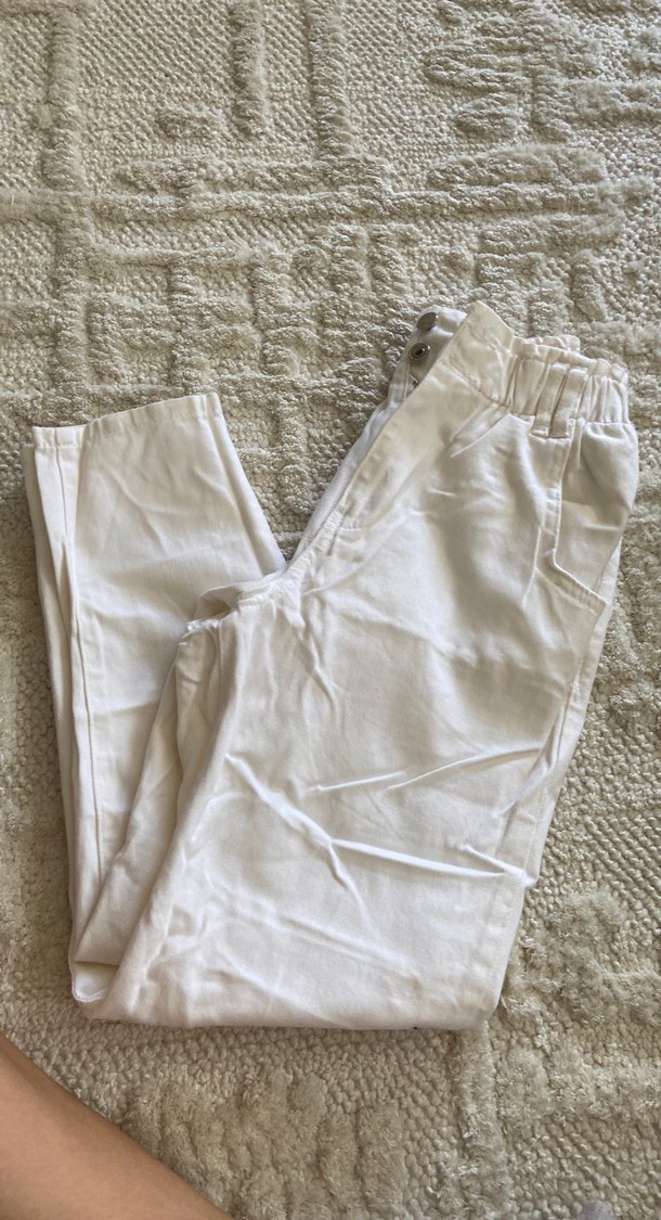 Beyaz keten kumaştan, rahat kesime sahip, düz ve normcore tarzda, zahmetsiz şıklık sunan kot. Pastel tonlarıyla yumuşak bir görünüm sağlar. Ürün hiç giyilmedi