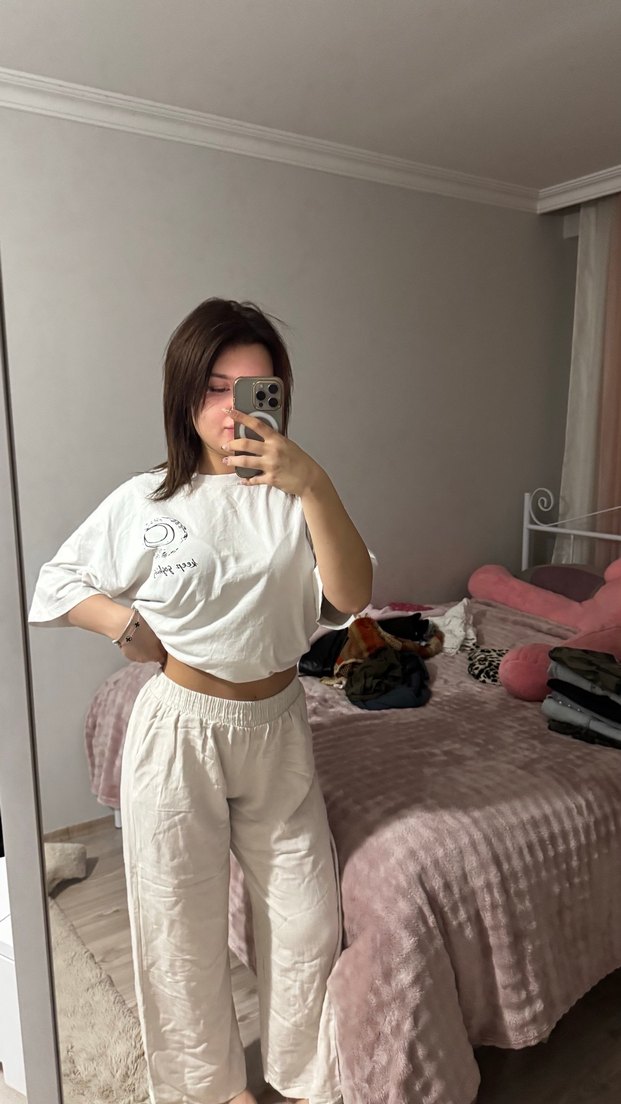 Beyaz keten kumaştan, rahat kesim ve midi boyda, elastik bel detaylı kadın pantolon. Trendy casual sokak stili için uygun.