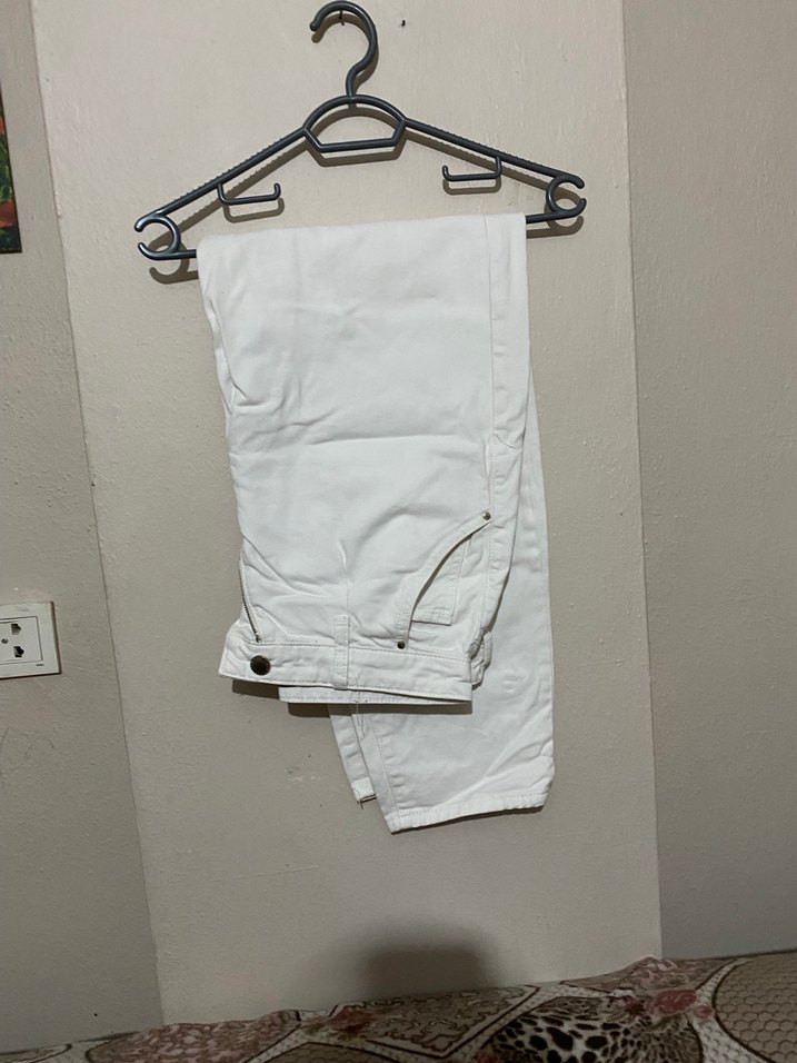 Beyaz keten, regular fit erkek pantolon. Minimalist ve desensiz tasarımıyla gündelik şıklık sunar.