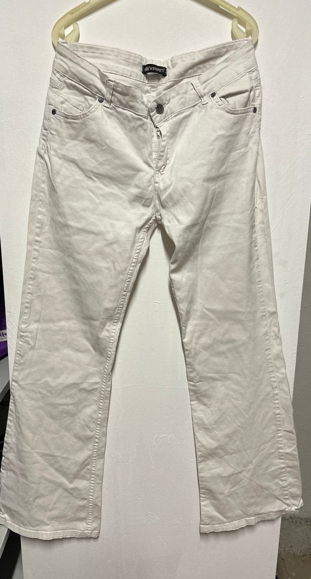 Beyaz keten kumaştan, salaş kesimli ve midi boyda kadın pantolon. Günlük kullanım için rahat ve şık, sokak modasına uygun tasarım. Beyaz kot tarzı