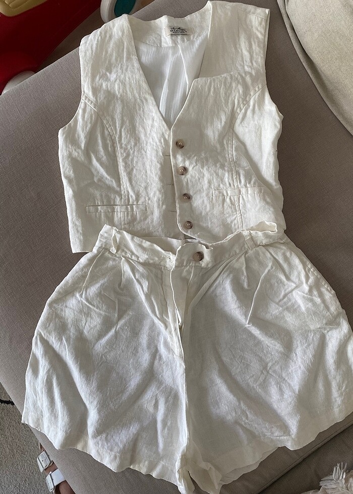 Beyaz keten şort yelek takım
