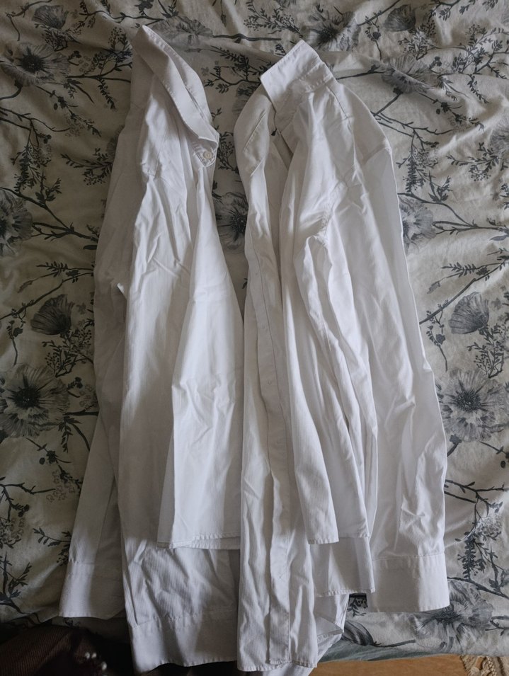 Beyaz keten kumaştan, drapeli ve bol kesim erkek gömleği. Uzun kollu, yakalı ve minimalist normcore tarzına uygun.