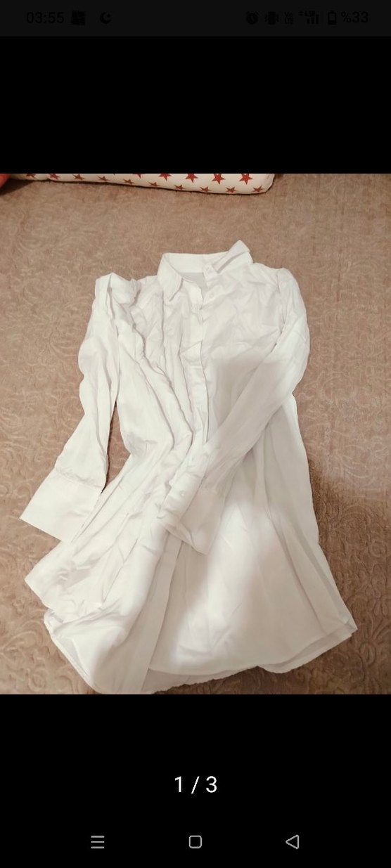 Beyaz keten kumaştan, uzun kollu ve yakalı gömlek elbise. Salaş ve dökümlü kesimiyle günlük kullanıma uygundur. Midi boyda ve minimal tasarımlıdır.