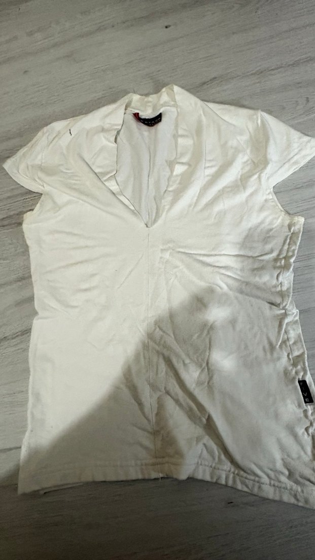 Beyaz Keten V Yaka Kadın Tişört