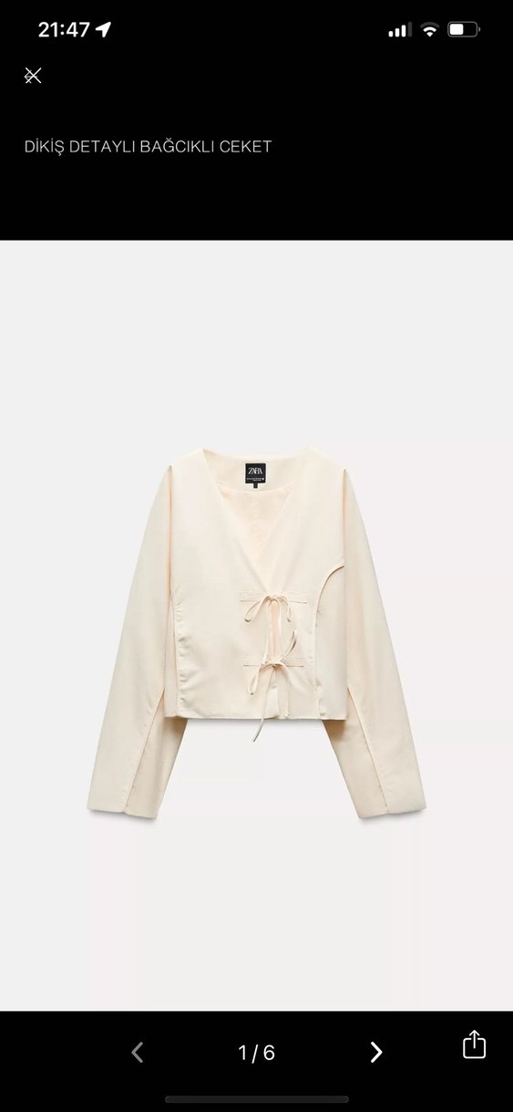 Uzun kollu, V yaka ve kemerli beyaz keten ceket. Gevşek ve kısa kesimiyle minimalist sokak stili sunar, günlük kullanım için uygundur.