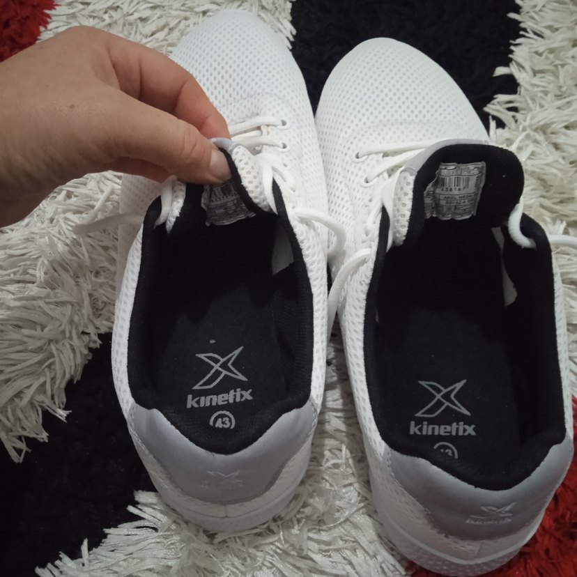 Beyaz Kinetix spor ayakkabı, stiletto cırt cırtlıdır. Nefes alan kumaş ve kauçuk tabanlı, spor ve günlük kullanıma uygundur.