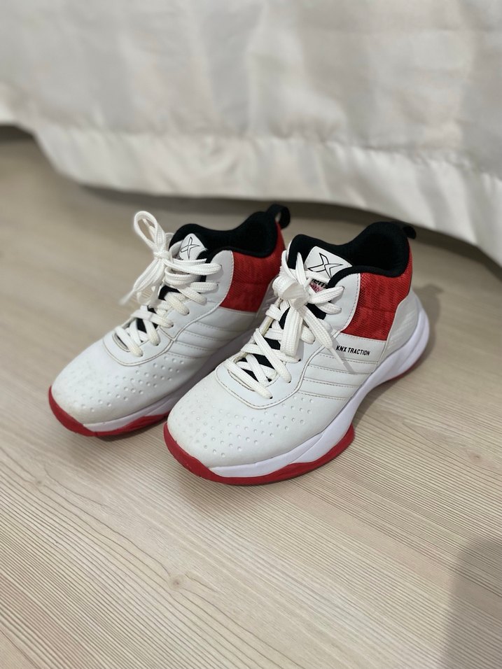 Beyaz ve kırmızı renklerde, baskılı desenli basketbol ayakkabısı 38 numara Birkaç kere giyildi sadece