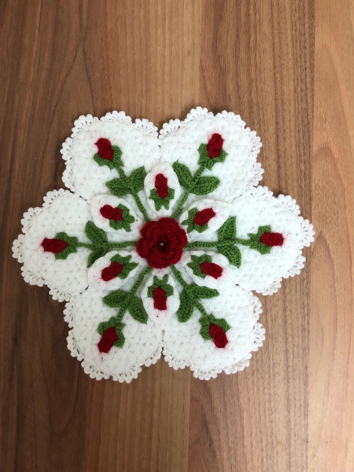 Beyaz Kırmızı Gül Motifli lif seti