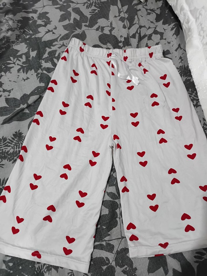 Bol kesim, midi boy, beyaz üzerine kırmızı kalp desenli pamuklu pijama altı, dantel detaylı, günlük kullanıma uygun. ❤️ufak delik var dikilir