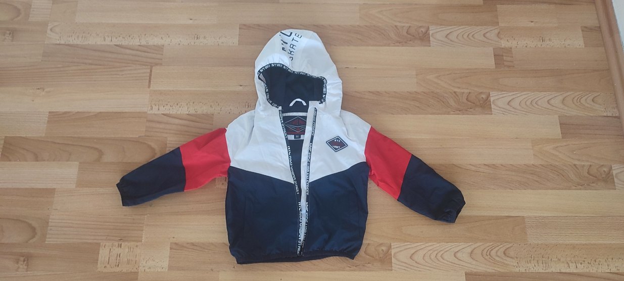 Beyaz-Kırmızı Kapüşonlu Erkek Çocuk Fermuarlı Ceket