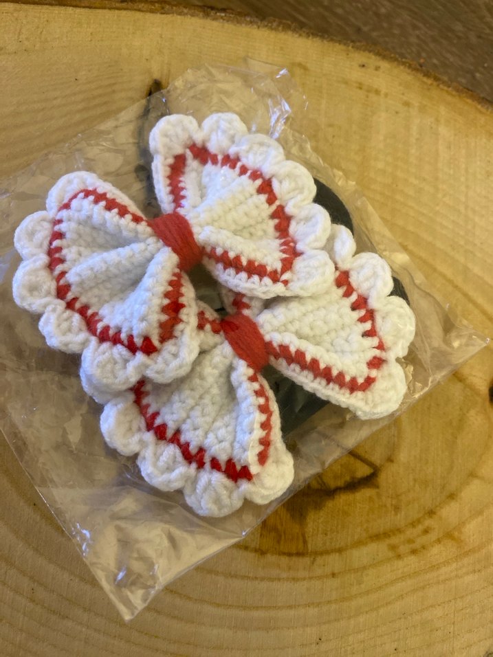 Beyaz Kırmızı Örgü Fiyonk Saç Tokası