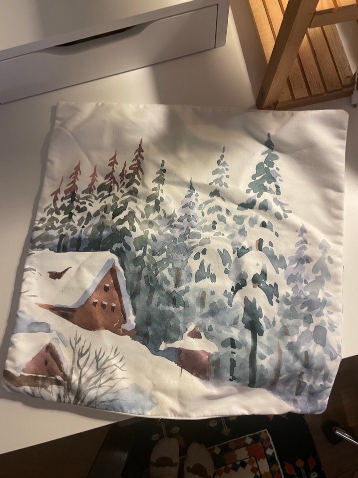 Beyaz Kış Manzarası Tablosu Kırlent Kılıfı