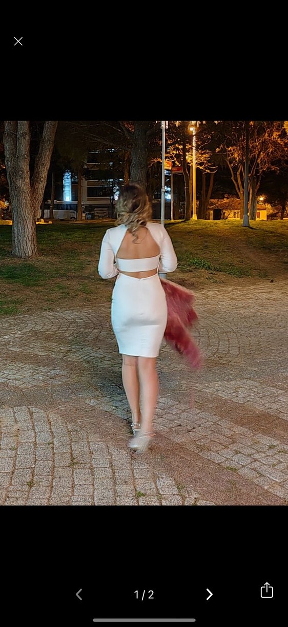 Bu beyaz kalem elbise, romantik akşamlar için ideal. Minimalist tarzı ile modaya uygun.