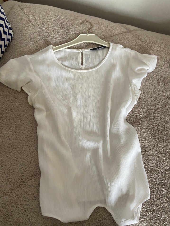 Beyaz Kısa Kollu Basic Kadın Bluz