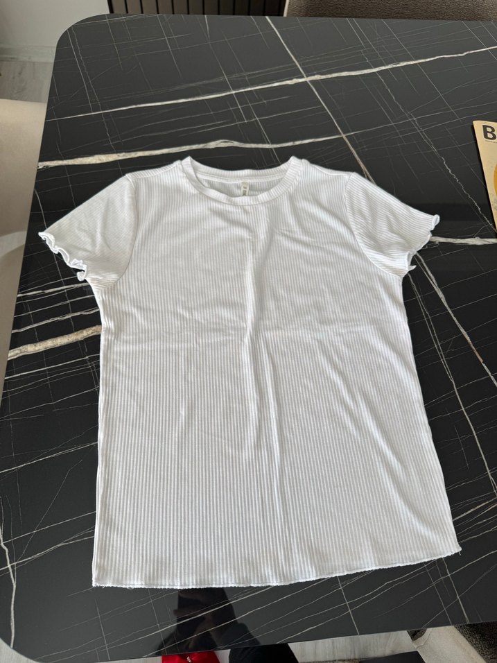 Beyaz Kısa Kollu Basic Kadın fitilli Tişört