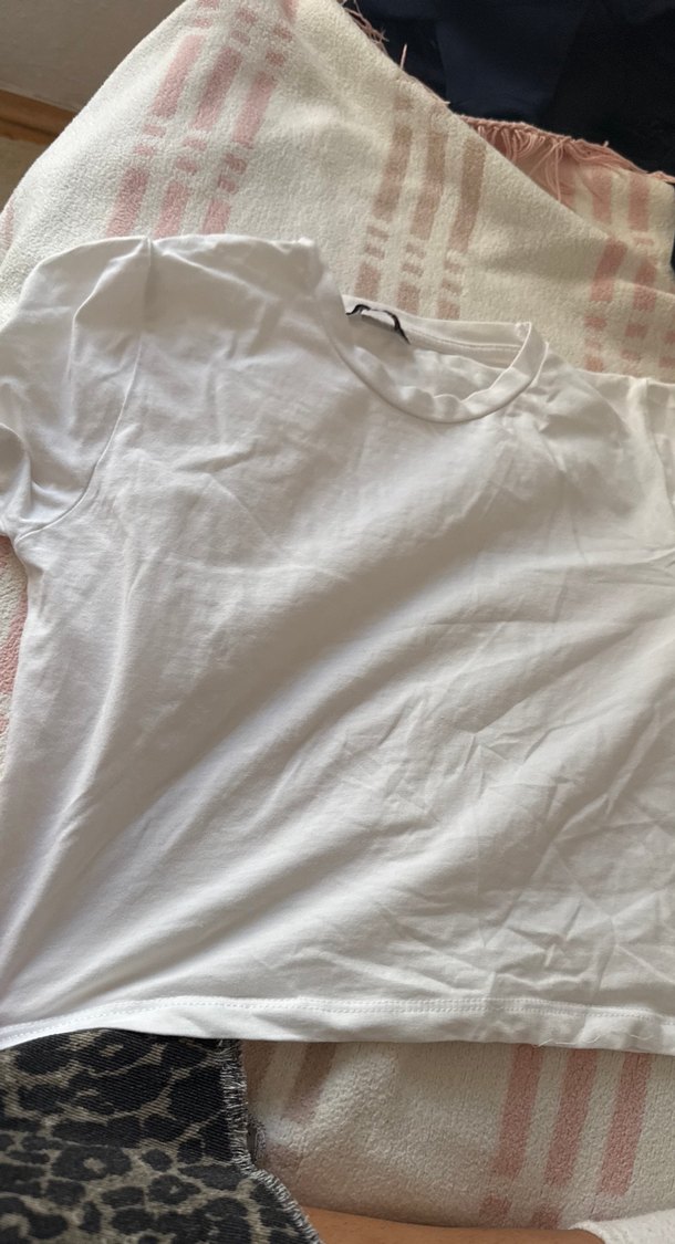 Yumuşak keten kumaştan, kısa kollu, yuvarlak yaka ve bol kesime sahip beyaz kadın tişörtü. Minimalist ve rahat, günlük kullanım için uygundur.