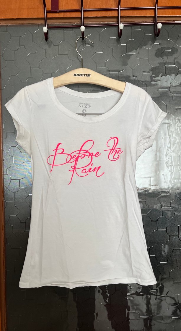 Beyaz, pamuklu, kısa kollu, dar kesim ve yuvarlak yakalı tişört, pastel renkli baskı detaylı. Günlük kullanım için uygun.