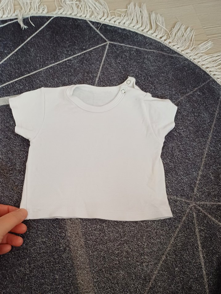 Omuzda çıtçıtlı, yumuşak kumaştan yapılmış beyaz kısa kollu bebek atlet. Üstüne giymek için uygundur.