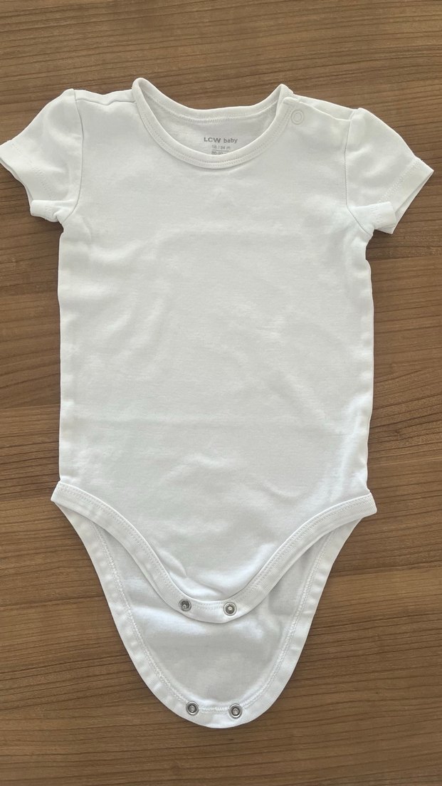 Kısa kollu, beyaz renkli bebek body. Yuvarlak yakalı ve alt kısmında kolay açılıp kapanan çıtçıtlı. Yumuşak ve rahat kumaş, sade şık tasarım. 8 adet