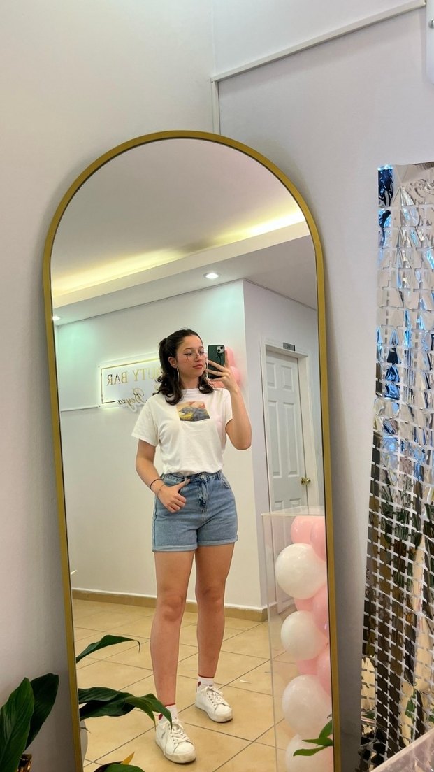 Beyaz Kısa Kollu Desenli Tişört