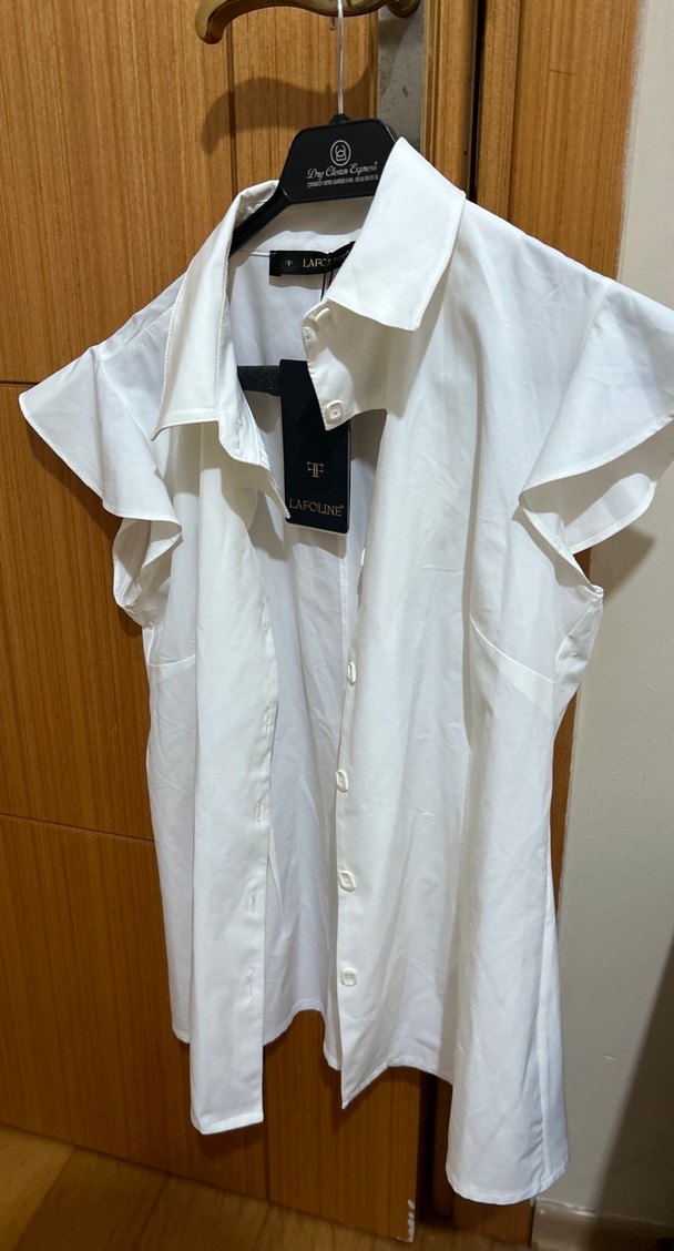 Beyaz Kısa Kollu Düğmeli Kadın Gömlek