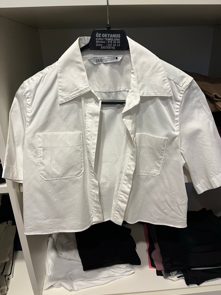 Beyaz renkli, kısa kollu kadın gömlek, yakalı ve düğmeli tasarıma sahiptir. Normal kesim ve kısa boyda, pamuklu yumuşak kumaştan üretilmiştir, günlük rahat kullanım için uygundur.